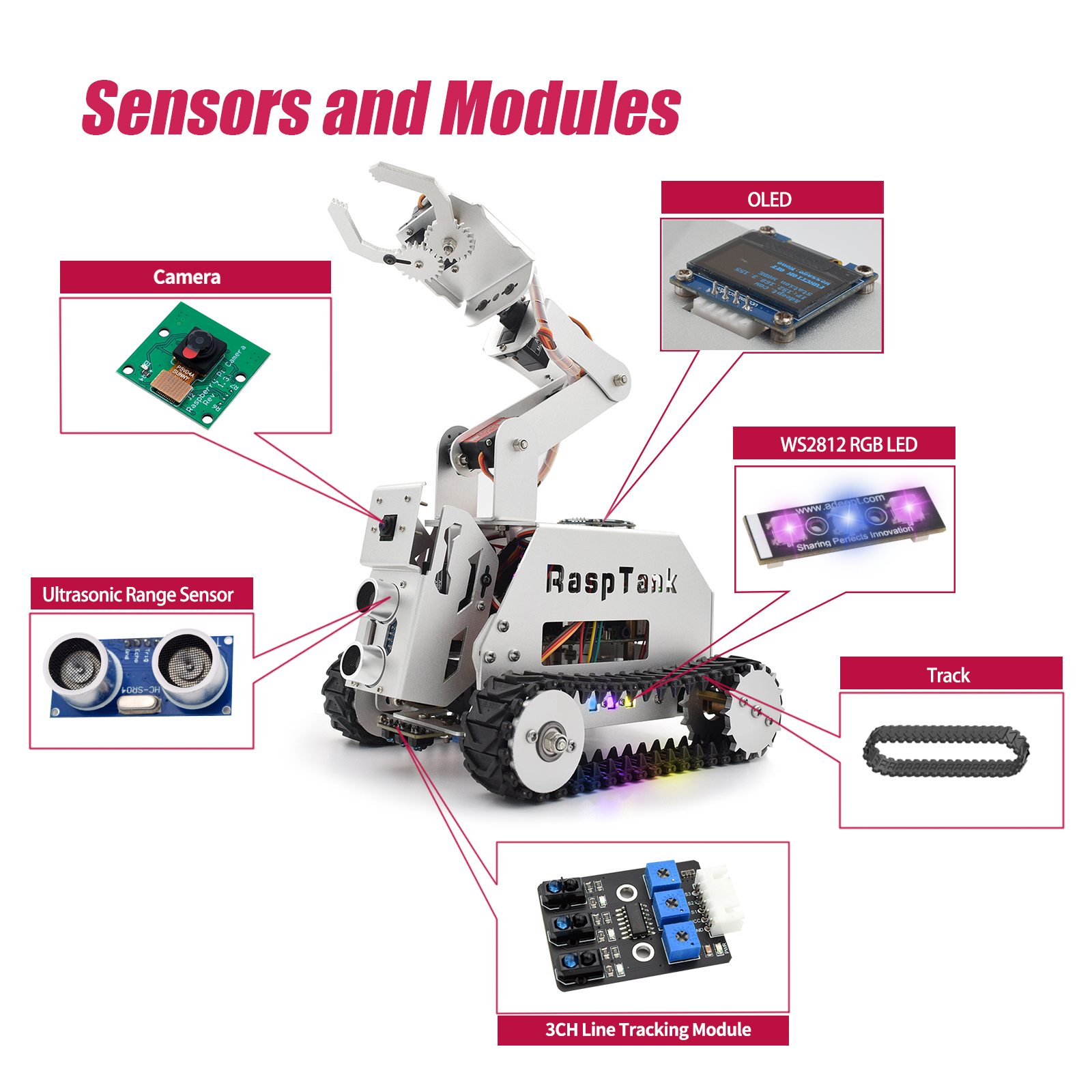 • [DIY Assembly Kit] Designed for AI & STEM education. Made of aluminum alloy. Compatible with Raspberry Pi 5/4B/3B/3B+(Raspberry Pi NOT Included!). Intermediate-level project(1.5-3 hours assembly). Recommended for ages 16+.