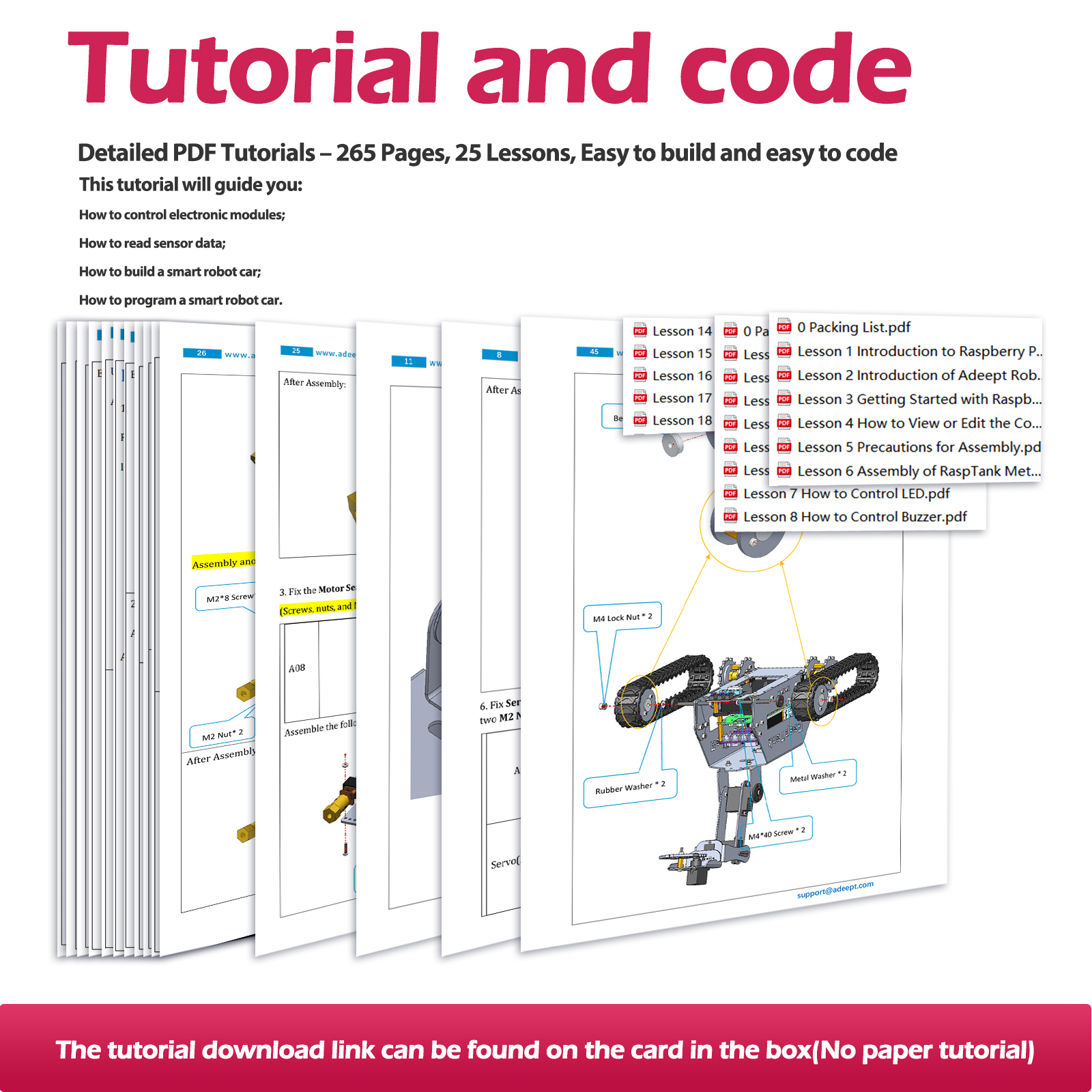 • 300+ pages full-color manual(PDF, download from Adeept website);